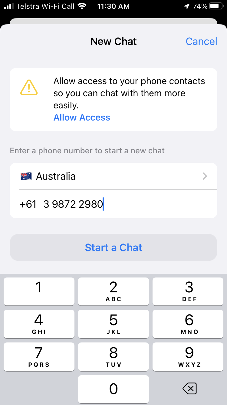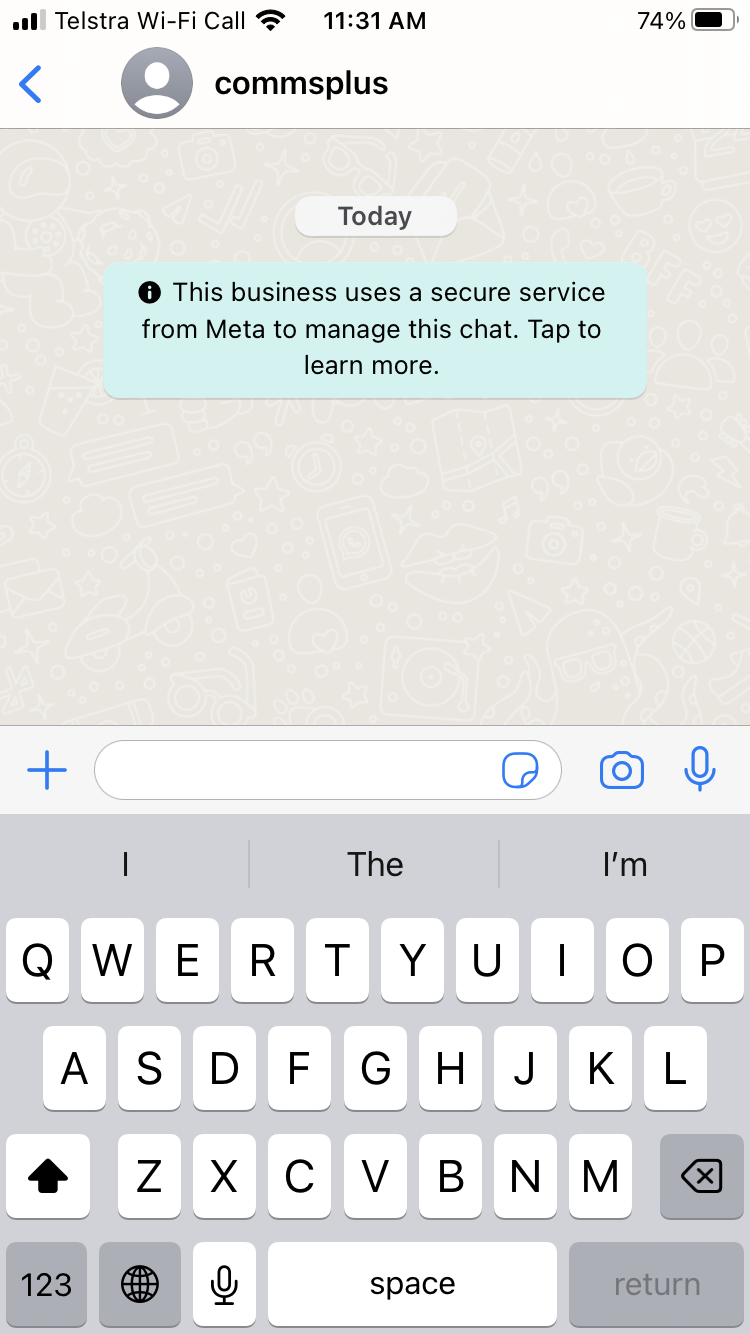 This is achieved by the WhatsApp guided conversation chat bot when you initiate a chat with the CommsPlus support phone number +61 3 9872 2980 using WhatsApp shown below.